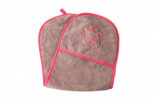 Полотенце из микроволокна для животных интенсивно впитывает влагу и грязь, собирает шерсть, удерживает запахи, а также препятствует размножению вредных бактерий. Мягкая структура ткани не травмирует нежную кожу животного. Удобные кармашки для рук позволяют завернуть и вытереть питомца после купания, а также удалить остатки пищи с мордочки. Полотенце легко сушится благодаря удобной петельке на поверхности. Кроме сушки питомца после мытья, полотенце можно использовать как одеяло или коврик во время путешествий для защиты салона автомобиля от шерсти.